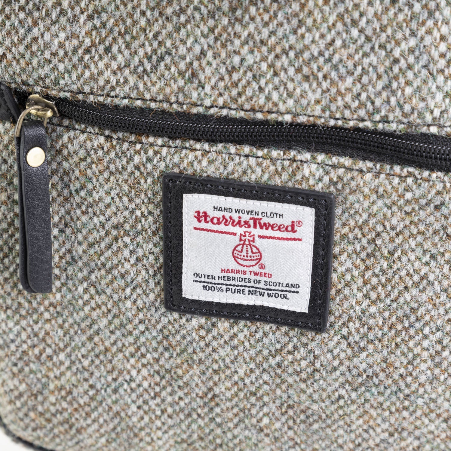 Harris Tweed Leather Large Backpack Green & White Barleycorn / Black