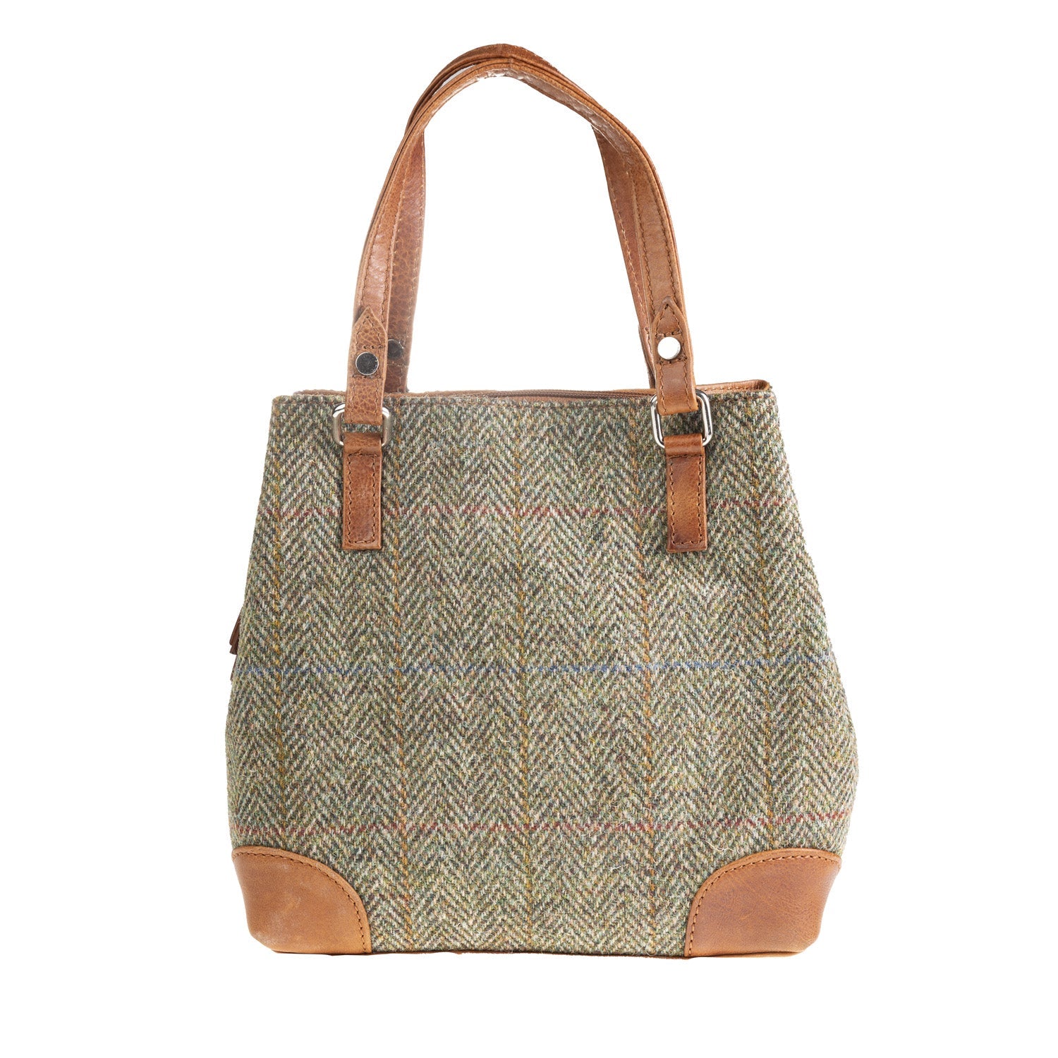 Ladies Harris Tweed Leather Hand Bag Lt Brown Check / Tan