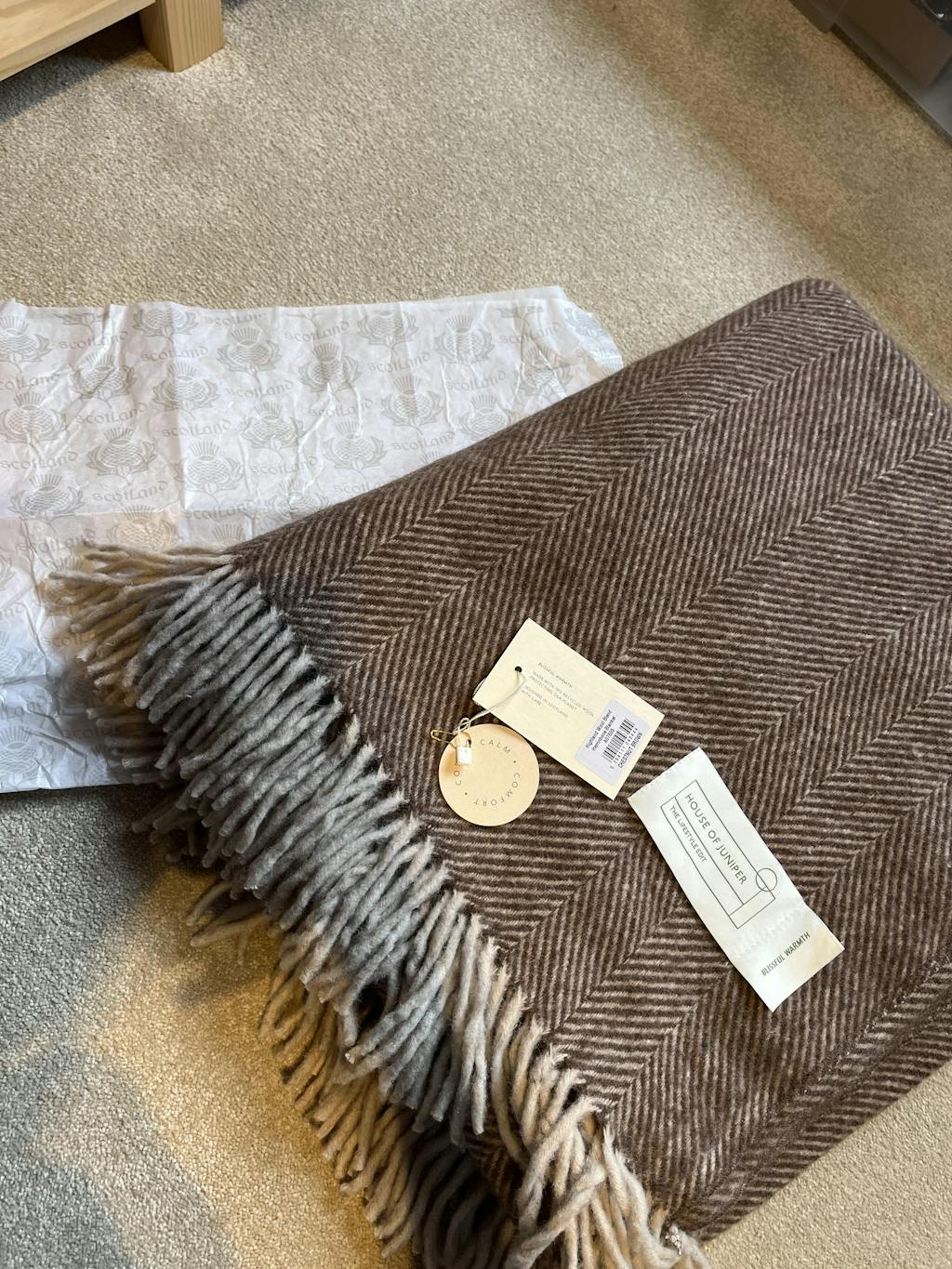 HIGHLAND TWEEDS Herringbone Wool Blend Rug.  Herringbone tartan rug made of thick blended wool. Perfect when you need to warm yourself up on a chilly day or wish to decorate your sofa. Warm and cosy, in a timeless herringbone pattern. Perfectly finished with a 3 inch fringe. WIDTH (CM): 157TOTAL LENGTH (CM) INC FRINGES: 189FRINGES (CM): 761" x 74"75% Wool, 15% Polyester & 10% Nylon