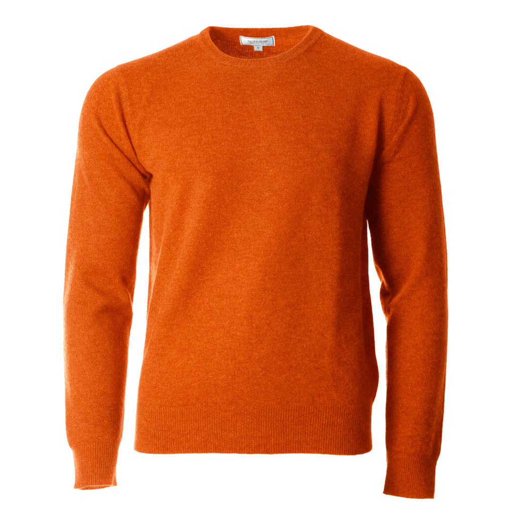 100% Cashmere Men Crew Neck Jumper - Mandarin Orange