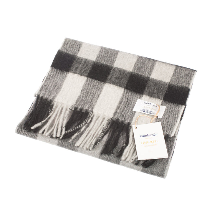 Edinburgh Cashmere Scarf Giant Chequer - Black/Oyster
