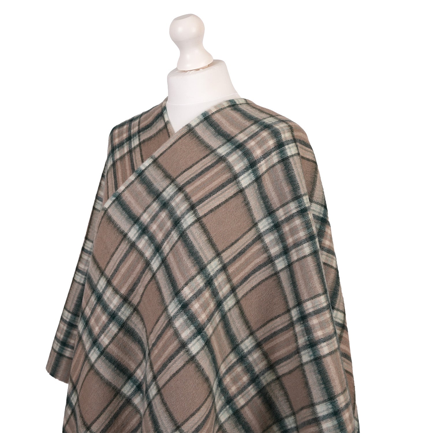 EDINBURGH LAMBSWOOL Ladies Long Tartan Cape.  This stylish long cape is a must-have in a contemporary wardrobe. The use of finest lambswool makes it an exquisite garment universal enough to substitute a jumper or to provide an extra layer of warmth and chic.  Edinburgh Lambswool uses only the finest lambswool in the production of their knitwear which has strong natural qualities and is soft and comfortable to wear. With reasonable care your garment will last for many years.