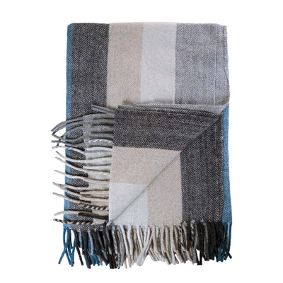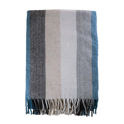 Stripe Herringbone Blanket Natural Teal - Dunedin Cashmere